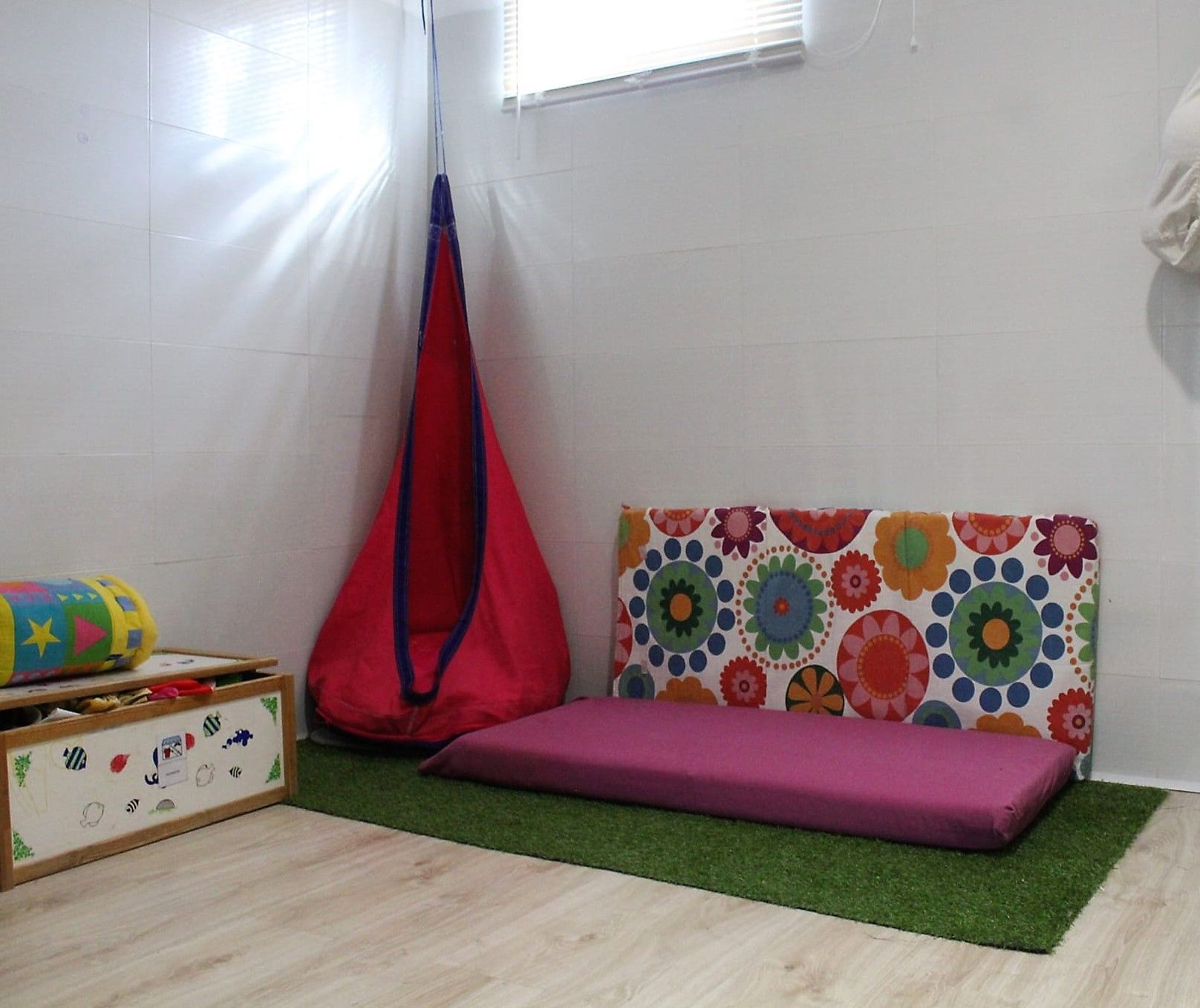 Fachada de la escuela y uno de nuestros espacios para la calma